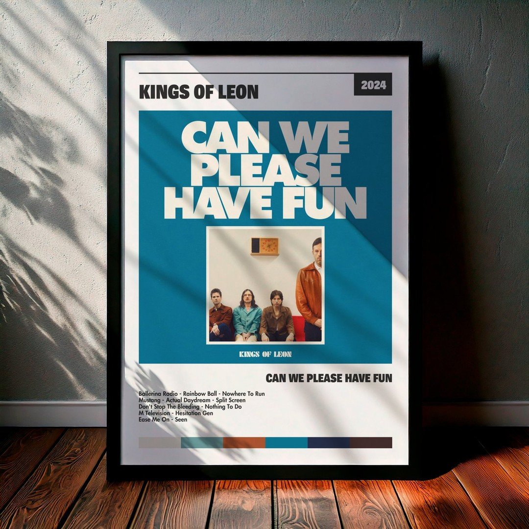 Nuestra colección de cuadros de Kings of Leon captura la esencia de sus álbumes más icónicos, presentados en un elegante estilo, en este caso te presentamos el de su disco Can We Please Have Fun.