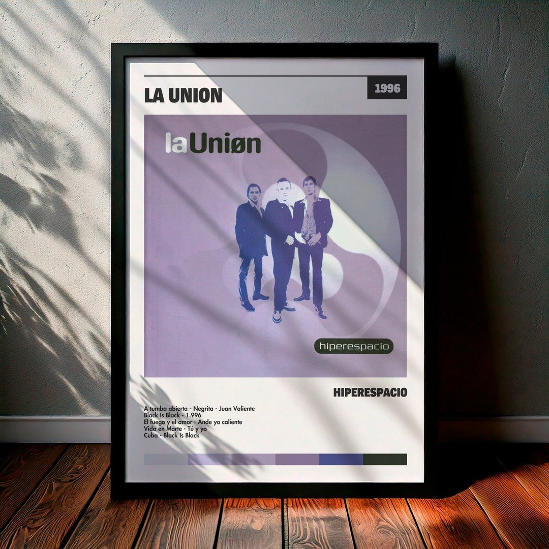 Nuestra colección de cuadros de La Unión captura la esencia de sus álbumes más icónicos, presentados en un elegante estilo, en este caso te presentamos el de su disco Hiperespacio.