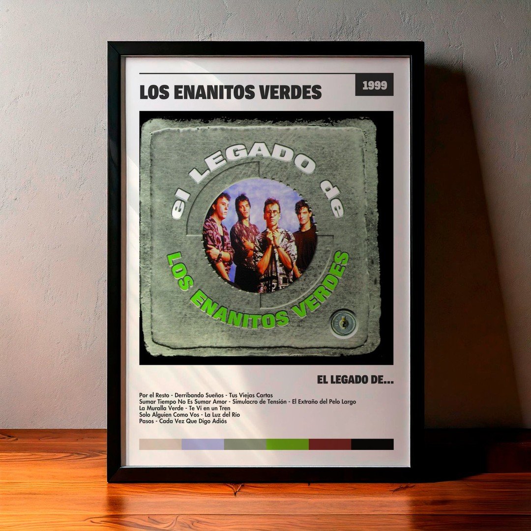 Nuestra colección de cuadros de Los Enanitos Verdes captura la esencia de sus álbumes más icónicos, presentados en un elegante estilo, en este caso te presentamos el de su disco El Legado De….
