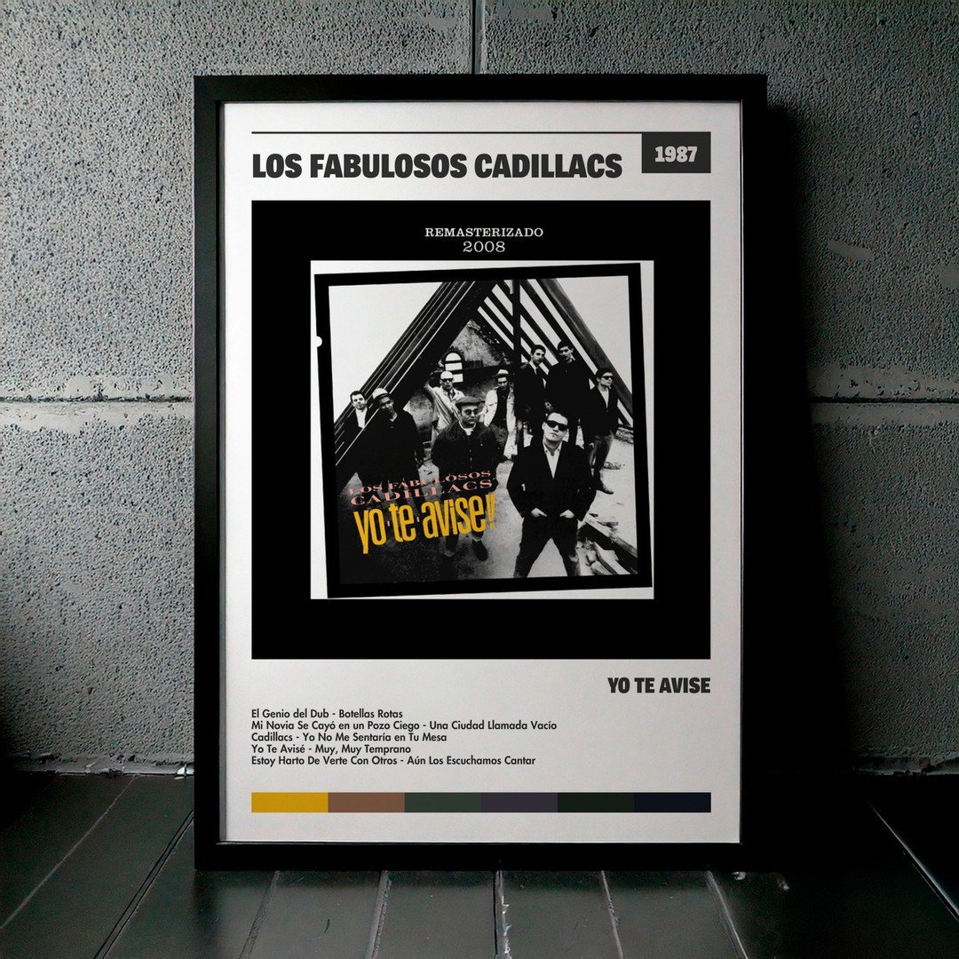 Nuestra colección de cuadros de Los Fabulosos Cadillacs captura la esencia de sus álbumes más icónicos, presentados en un elegante estilo, en este caso te presentamos el de su disco Yo Te Avisé.