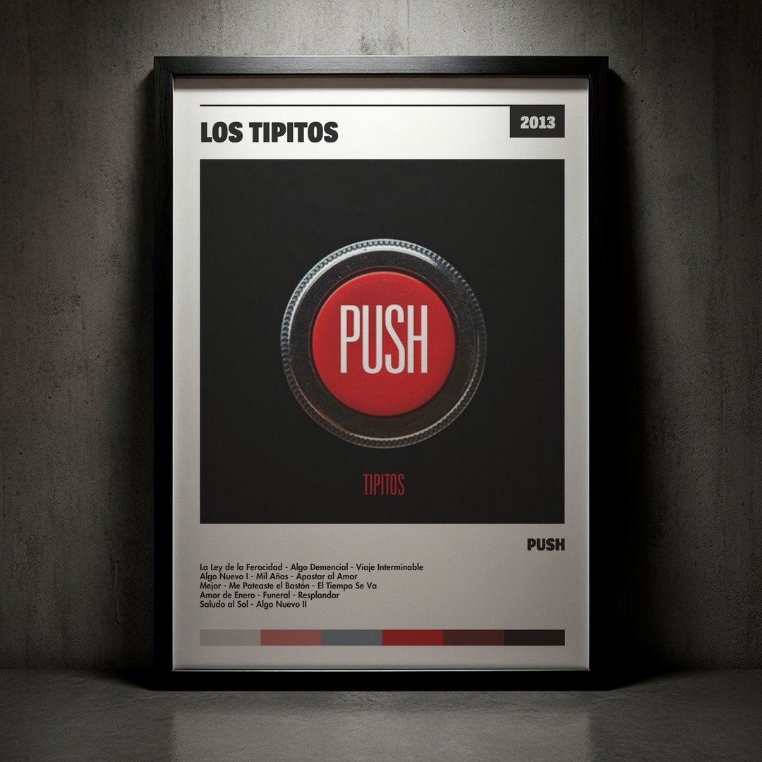 Nuestra colección de cuadros de Los Tipitos captura la esencia de sus álbumes más icónicos, presentados en un elegante estilo, en este caso te presentamos el de su disco Push.