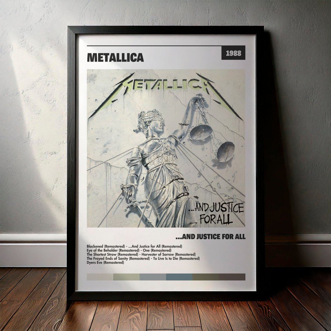 Nuestra colección de cuadros de Metallica captura la esencia de sus álbumes más icónicos, presentados en un elegante estilo, en este caso te presentamos el de su disco …And Justice for All.