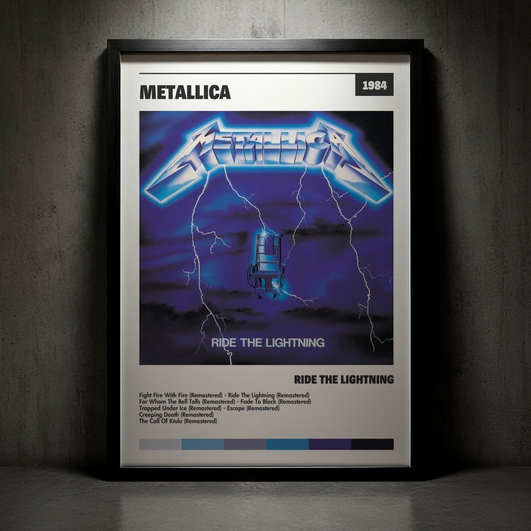 Nuestra colección de cuadros de Metallica captura la esencia de sus álbumes más icónicos, presentados en un elegante estilo, en este caso te presentamos el de su disco Ride The Lightning.
