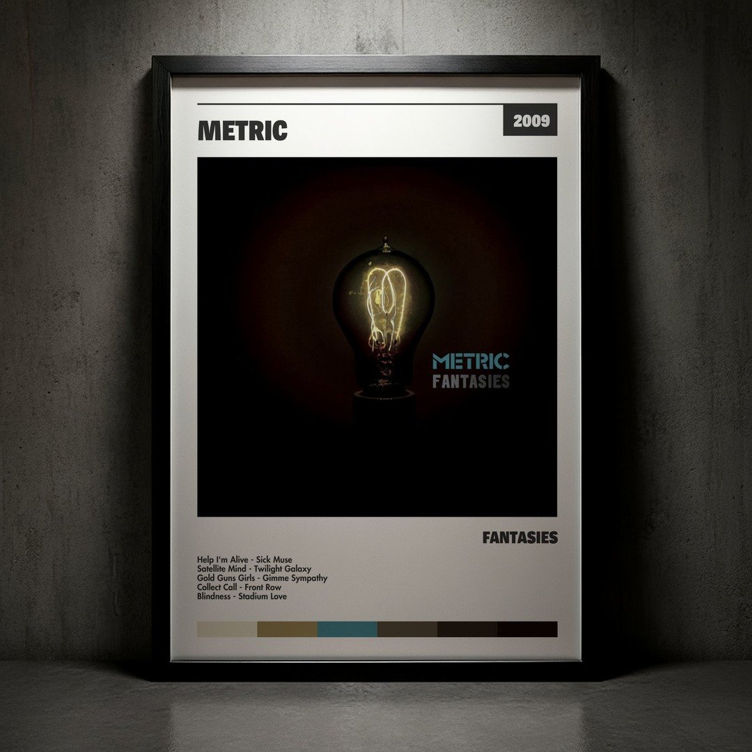 Nuestra colección de cuadros de Metric captura la esencia de sus álbumes más icónicos, presentados en un elegante estilo, en este caso te presentamos el de su disco Fantasies.