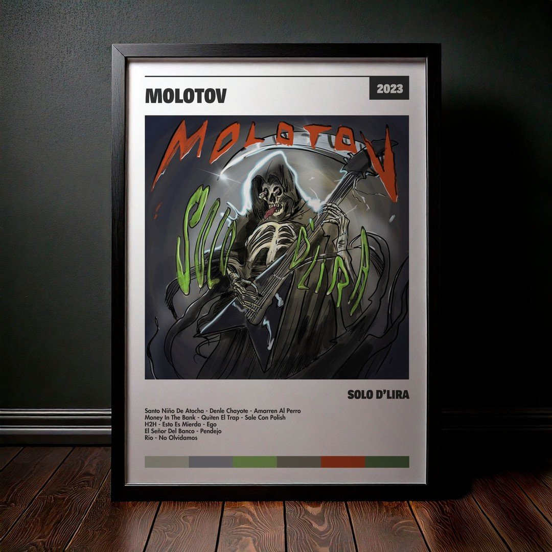 Nuestra colección de cuadros de Molotov captura la esencia de sus álbumes más icónicos, presentados en un elegante estilo, en este caso te presentamos el de su disco Sólo D’Lira.