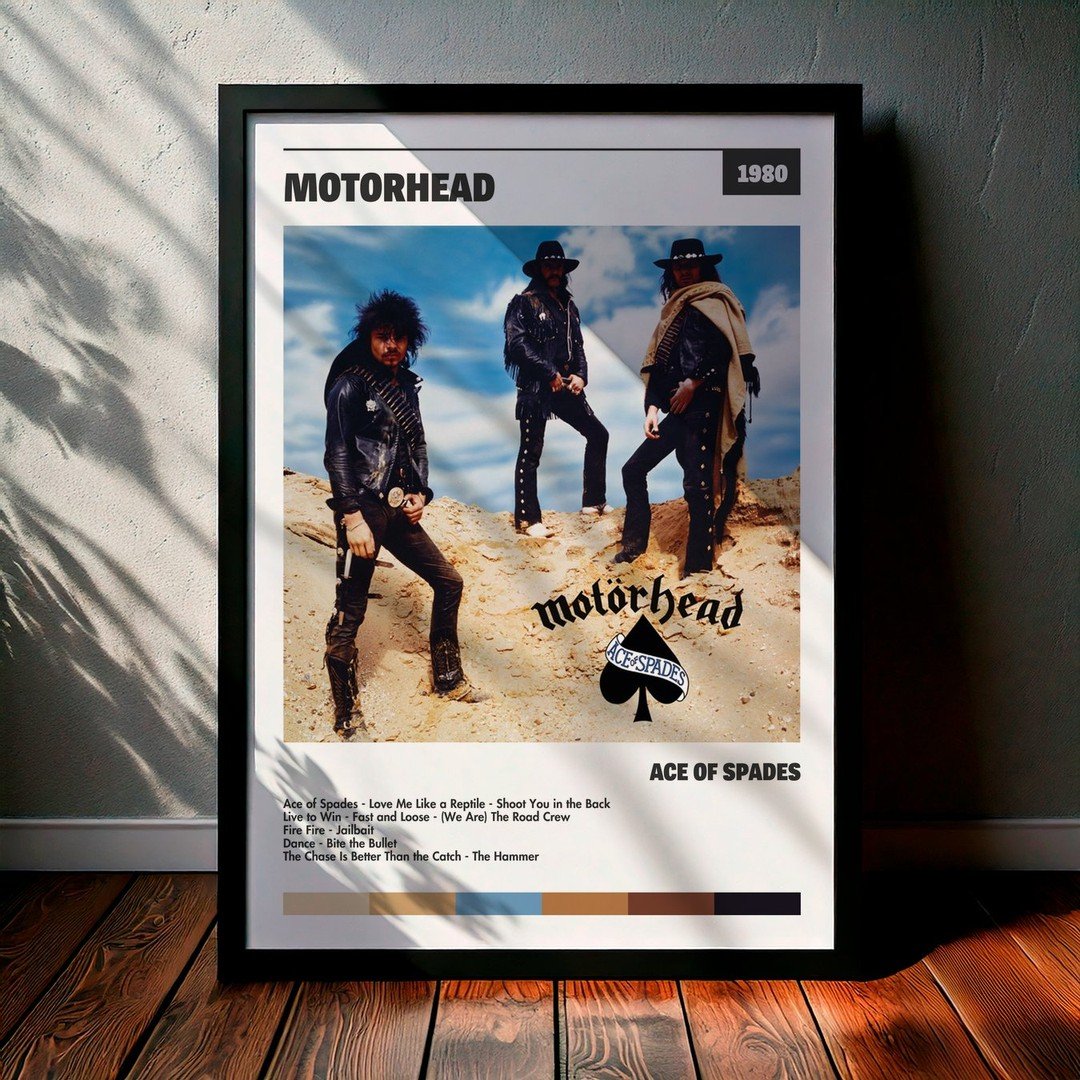 Nuestra colección de cuadros de Motörhead captura la esencia de sus álbumes más icónicos, presentados en un elegante estilo, en este caso te presentamos el de su disco Ace of Spades.