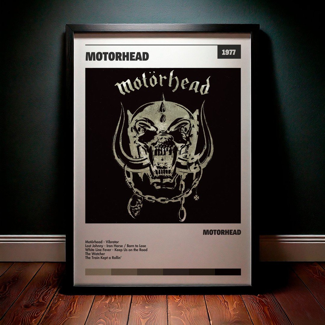 Nuestra colección de cuadros de Motörhead captura la esencia de sus álbumes más icónicos, presentados en un elegante estilo, en este caso te presentamos el de su disco Motorhead.