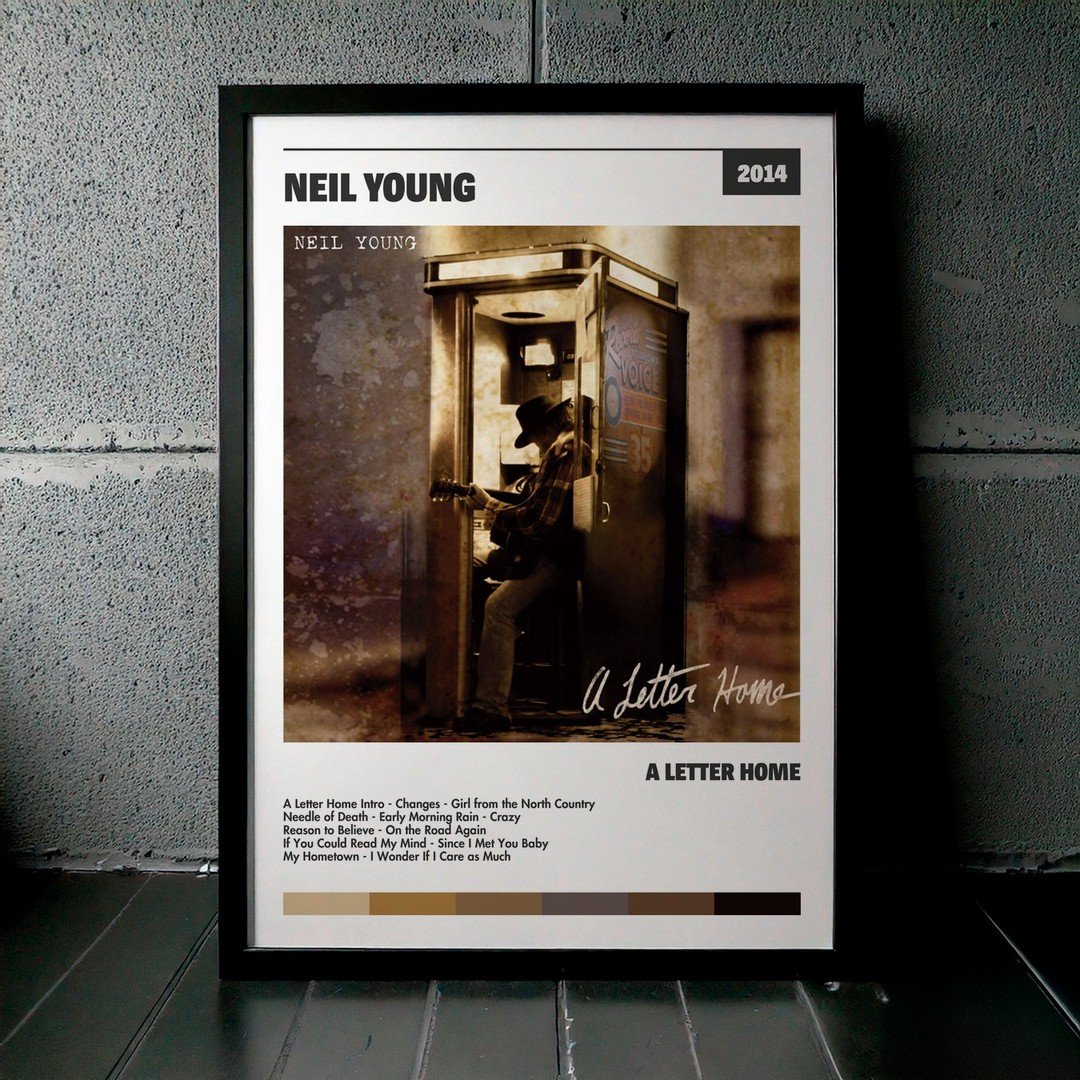 Nuestra colección de cuadros de Neil Young captura la esencia de sus álbumes más icónicos, presentados en un elegante estilo, en este caso te presentamos el de su disco A Letter Home.