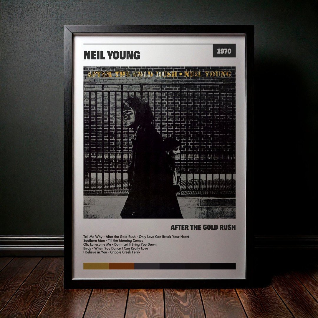 Nuestra colección de cuadros de Neil Young captura la esencia de sus álbumes más icónicos, presentados en un elegante estilo, en este caso te presentamos el de su disco After the Gold Rush.