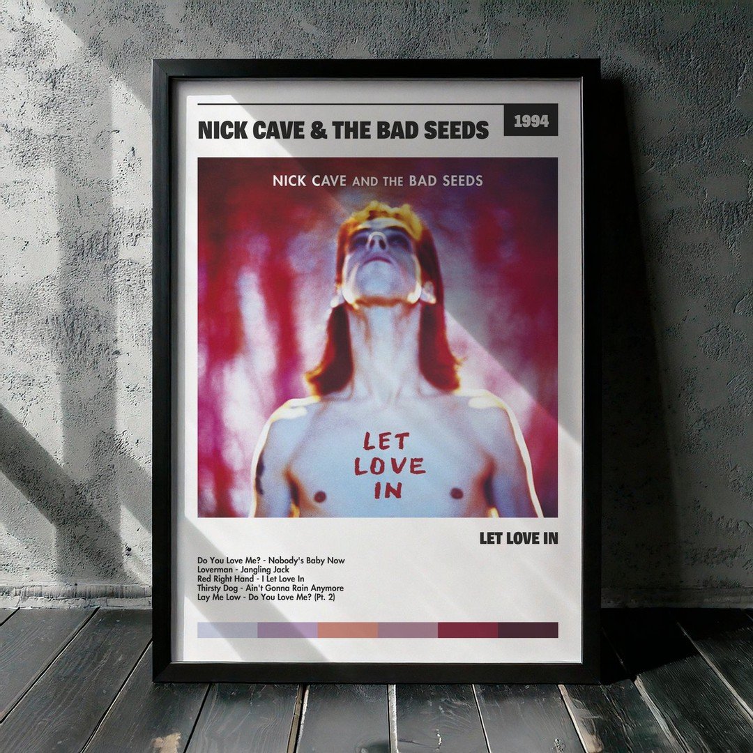 Nuestra colección de cuadros de Nick Cave & The Bad Seeds captura la esencia de sus álbumes más icónicos, presentados en un elegante estilo, en este caso te presentamos el de su disco Let Love In.