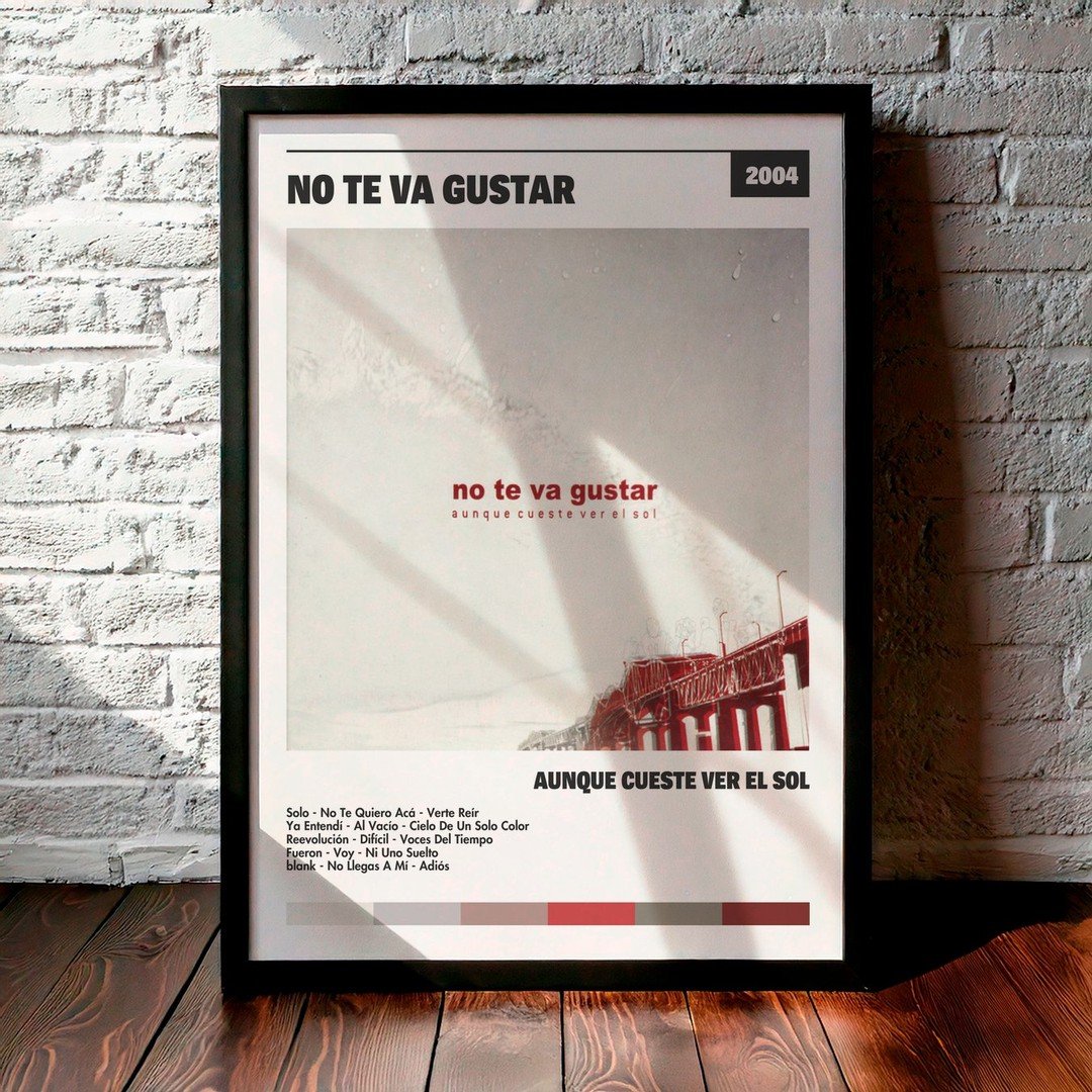 Nuestra colección de cuadros de No Te Va Gustar captura la esencia de sus álbumes más icónicos, presentados en un elegante estilo, en este caso te presentamos el de su disco Aunque Cueste Ver El Sol.