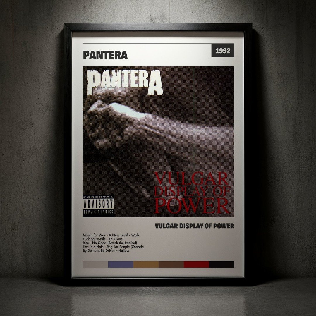 Nuestra colección de cuadros de Pantera captura la esencia de sus álbumes más icónicos, presentados en un elegante estilo, en este caso te presentamos el de su disco Vulgar Display of Power.