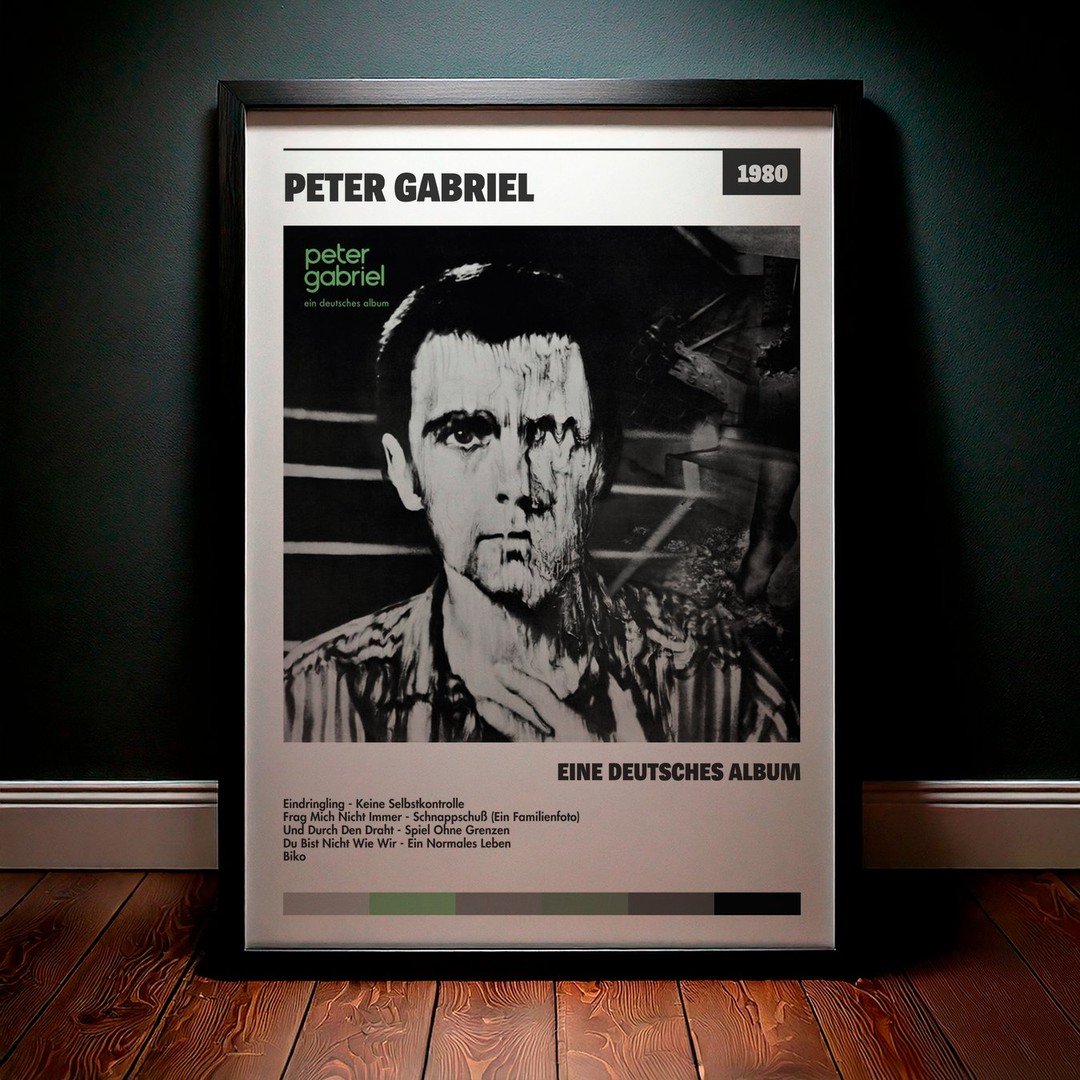Nuestra colección de cuadros de Peter Gabriel captura la esencia de sus álbumes más icónicos, presentados en un elegante estilo, en este caso te presentamos el de su disco eine deutsches album.