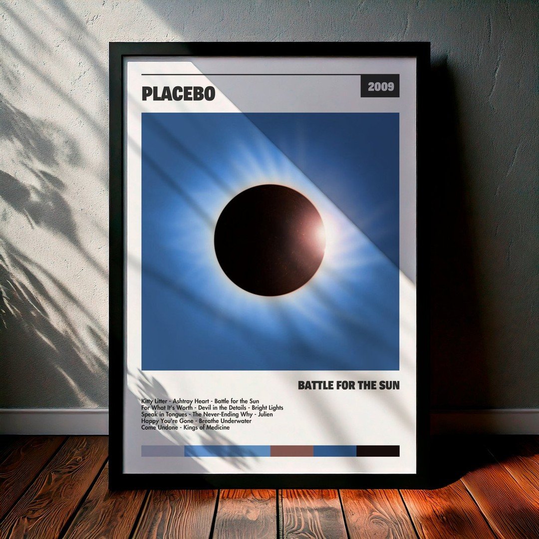 • Diseño Exclusivo: Cuadro de alta calidad basado en la portada del álbum Battle for the Sun de Placebo.