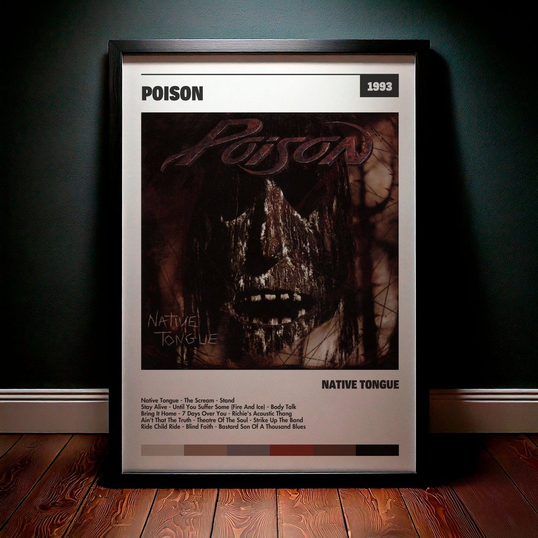 Nuestra colección de cuadros de Poison captura la esencia de sus álbumes más icónicos, presentados en un elegante estilo, en este caso te presentamos el de su disco Native Tongue.