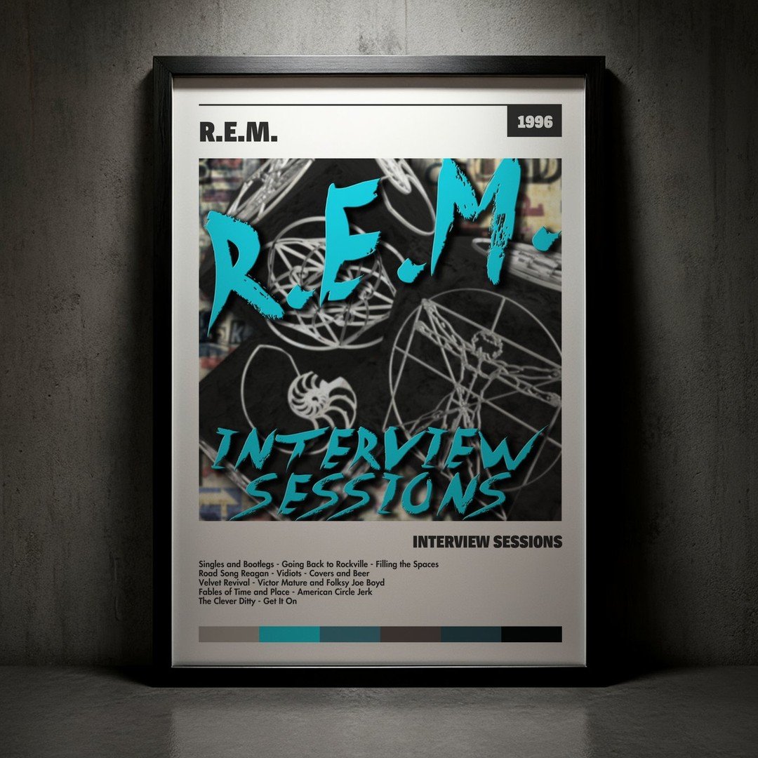 Nuestra colección de cuadros de R.E.M. captura la esencia de sus álbumes más icónicos, presentados en un elegante estilo, en este caso te presentamos el de su disco Interview Sessions.