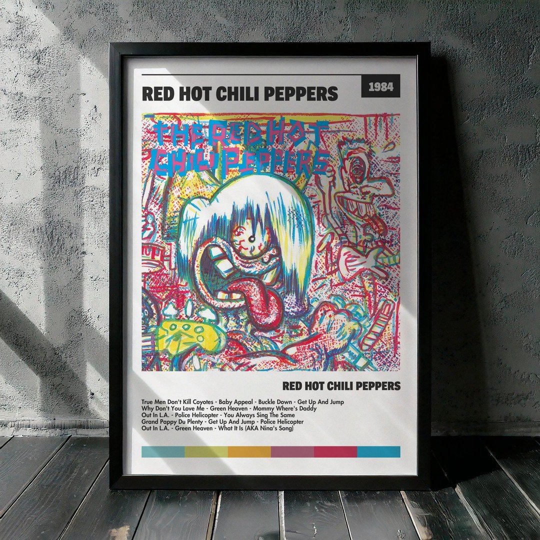 Nuestra colección de cuadros de Red Hot Chili Peppers captura la esencia de sus álbumes más icónicos, presentados en un elegante estilo, en este caso te presentamos el de su disco Red Hot Chili Peppers.