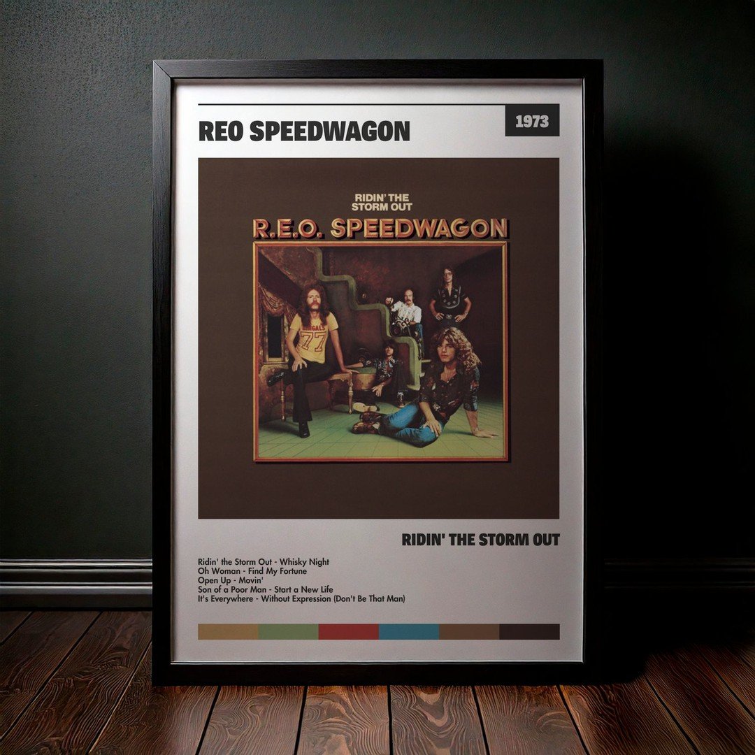 Nuestra colección de cuadros de REO Speedwagon captura la esencia de sus álbumes más icónicos, presentados en un elegante estilo, en este caso te presentamos el de su disco Ridin’ the Storm Out.