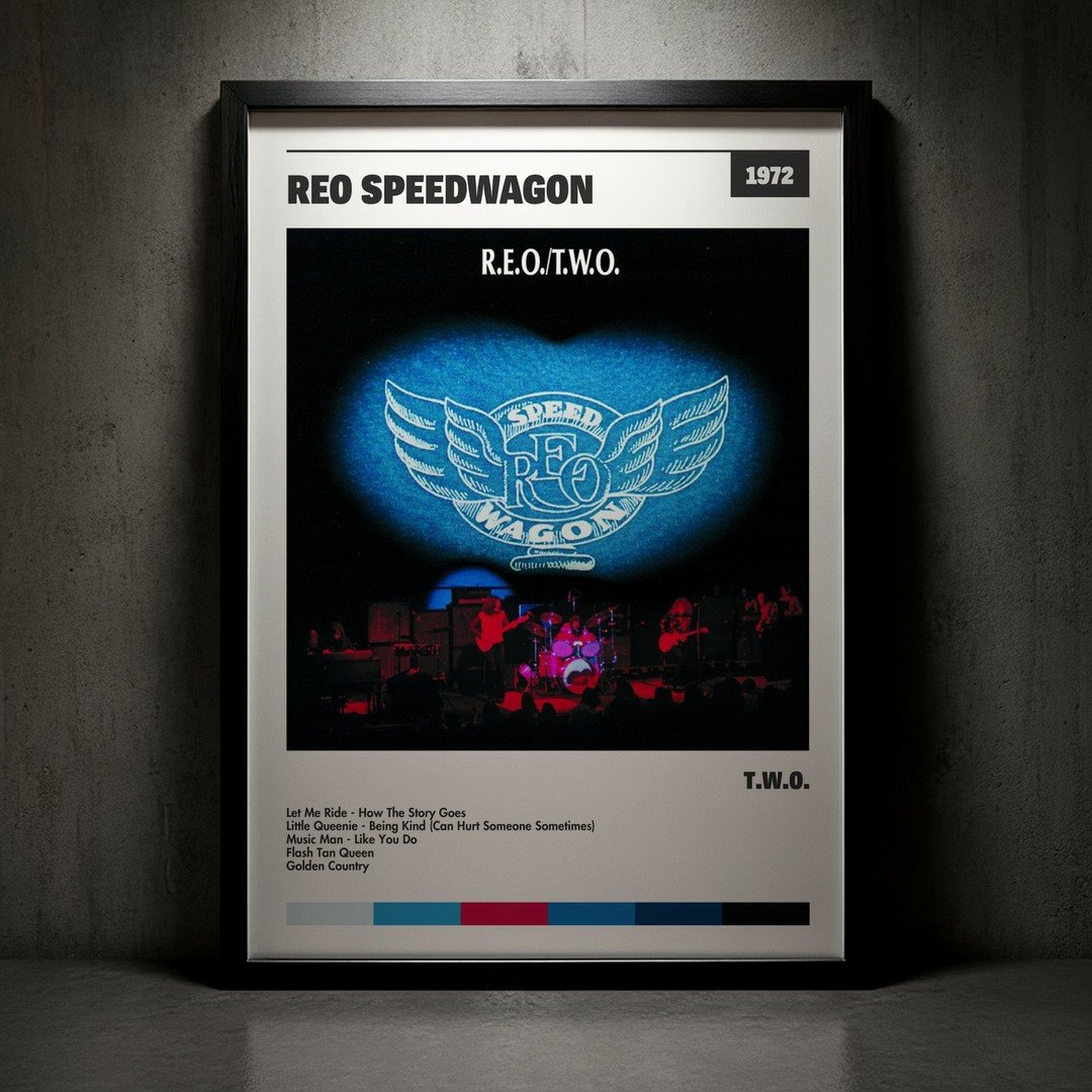 Nuestra colección de cuadros de REO Speedwagon captura la esencia de sus álbumes más icónicos, presentados en un elegante estilo, en este caso te presentamos el de su disco T.W.O..