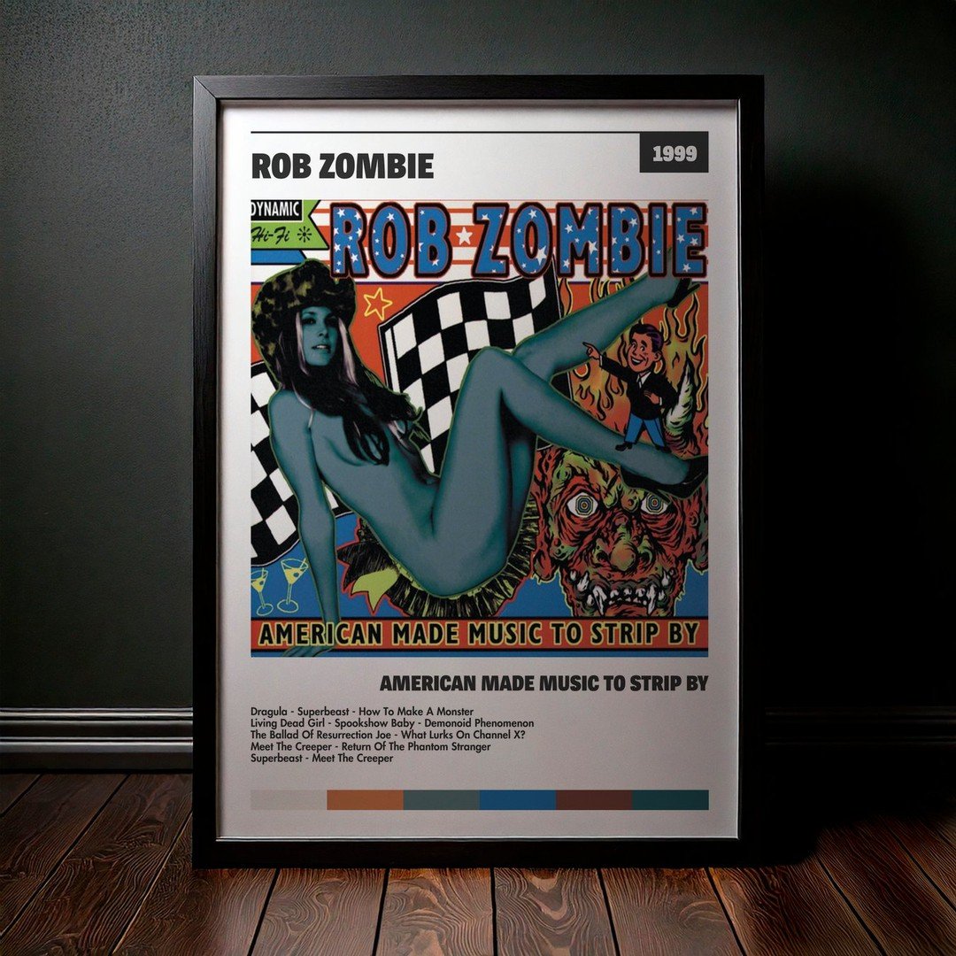• Diseño Exclusivo: Cuadro de alta calidad basado en la portada del álbum American Made Music To Strip By de Rob Zombie.