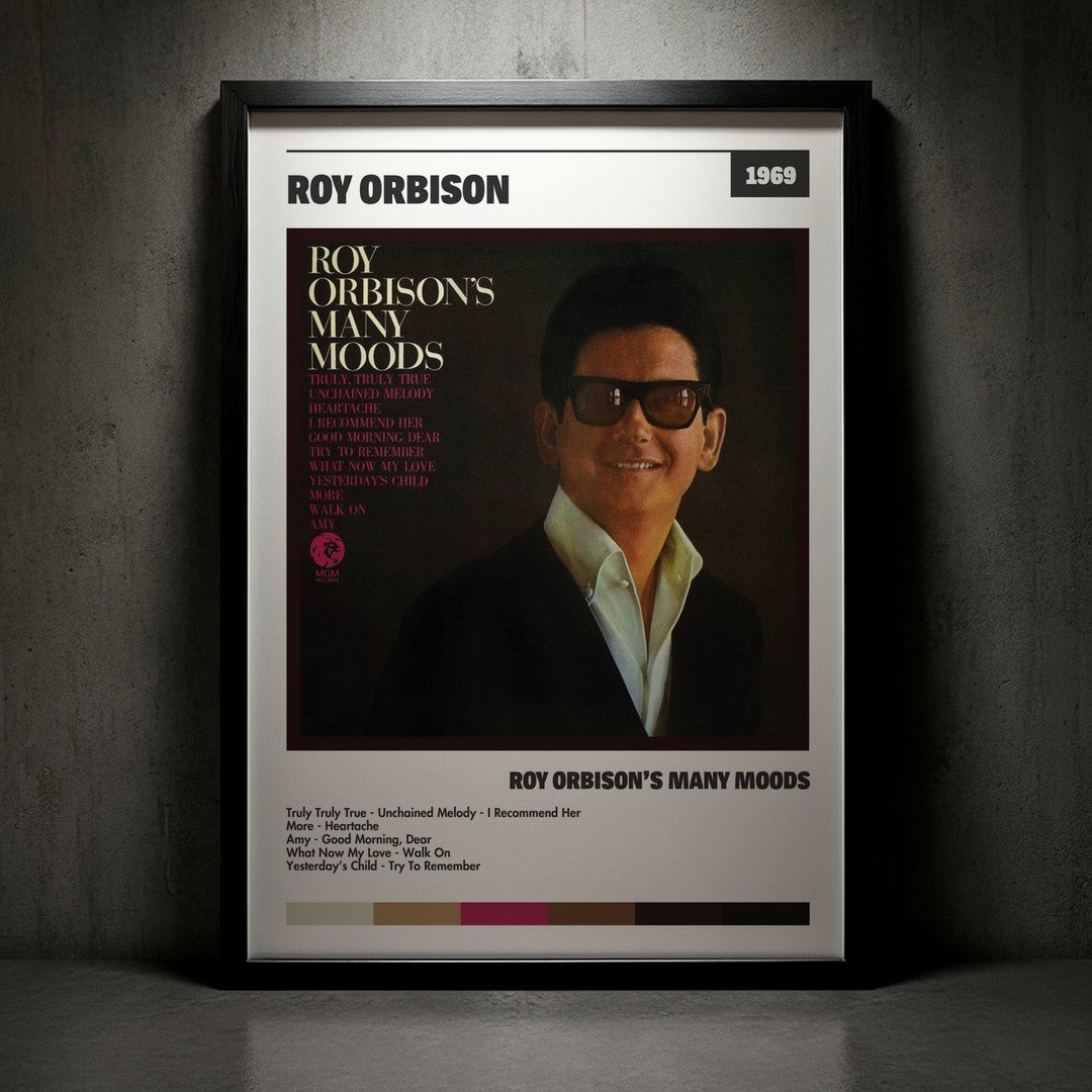 Nuestra colección de cuadros de Roy Orbison captura la esencia de sus álbumes más icónicos, presentados en un elegante estilo, en este caso te presentamos el de su disco Roy Orbison’s Many Moods.
