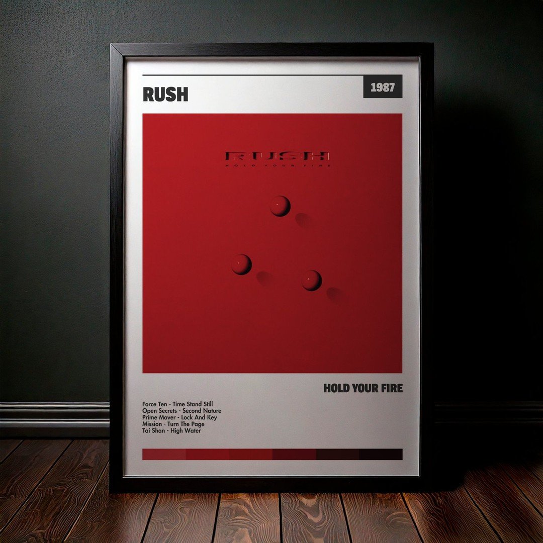 Nuestra colección de cuadros de Rush captura la esencia de sus álbumes más icónicos, presentados en un elegante estilo, en este caso te presentamos el de su disco Hold Your Fire.
