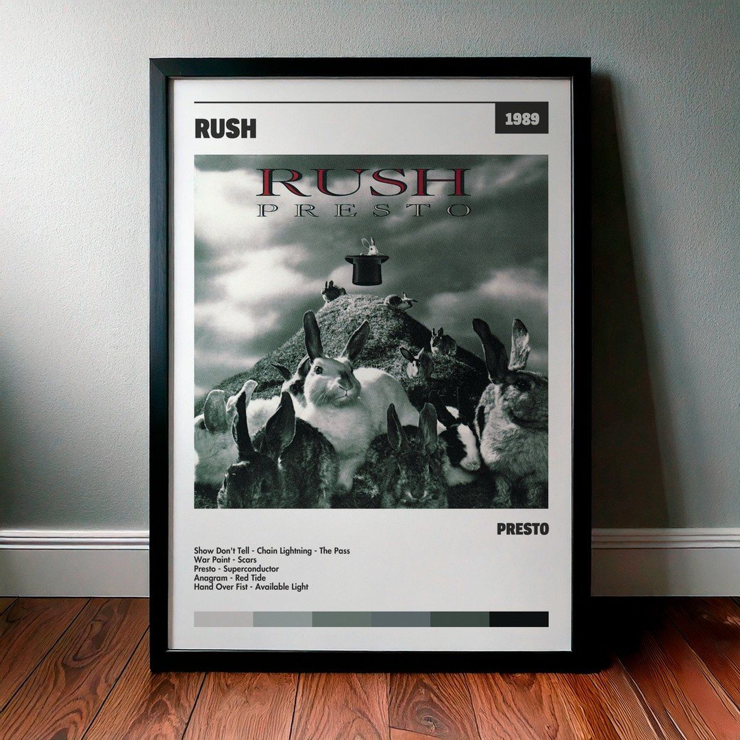 Nuestra colección de cuadros de Rush captura la esencia de sus álbumes más icónicos, presentados en un elegante estilo, en este caso te presentamos el de su disco Presto.