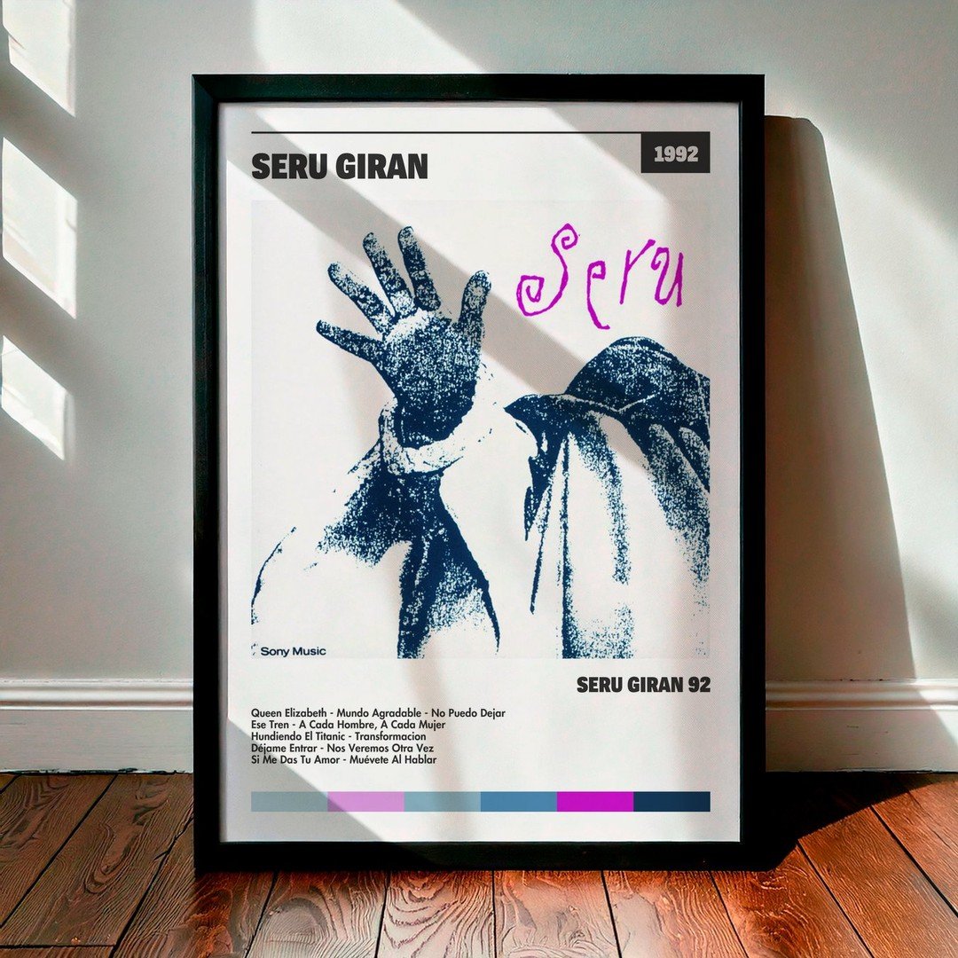 Nuestra colección de cuadros de Serú Girán captura la esencia de sus álbumes más icónicos, presentados en un elegante estilo, en este caso te presentamos el de su disco Seru Giran 92.