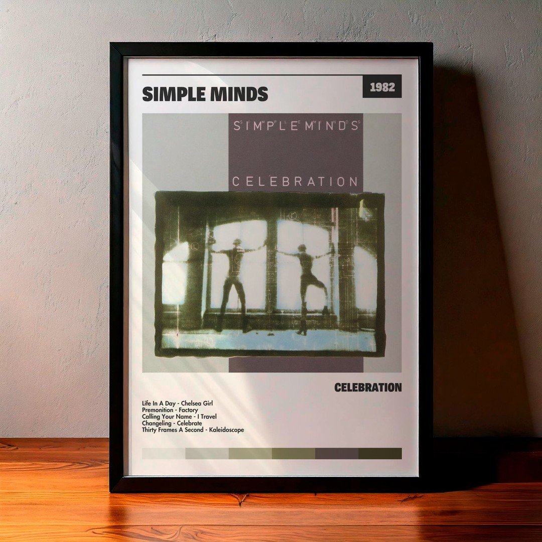 Nuestra colección de cuadros de Simple Minds captura la esencia de sus álbumes más icónicos, presentados en un elegante estilo, en este caso te presentamos el de su disco Celebration.