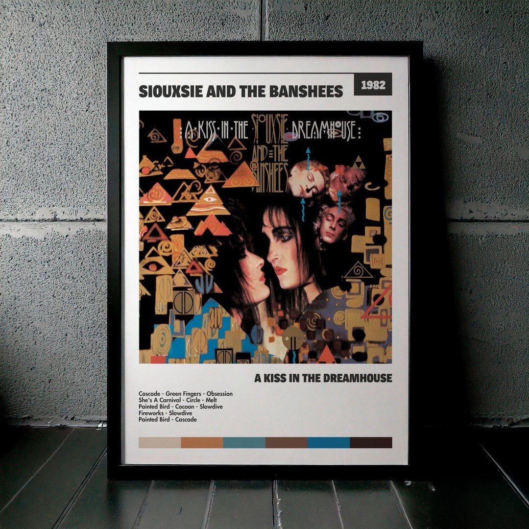Nuestra colección de cuadros de Siouxsie and the Banshees captura la esencia de sus álbumes más icónicos, presentados en un elegante estilo, en este caso te presentamos el de su disco A Kiss In The Dreamhouse.