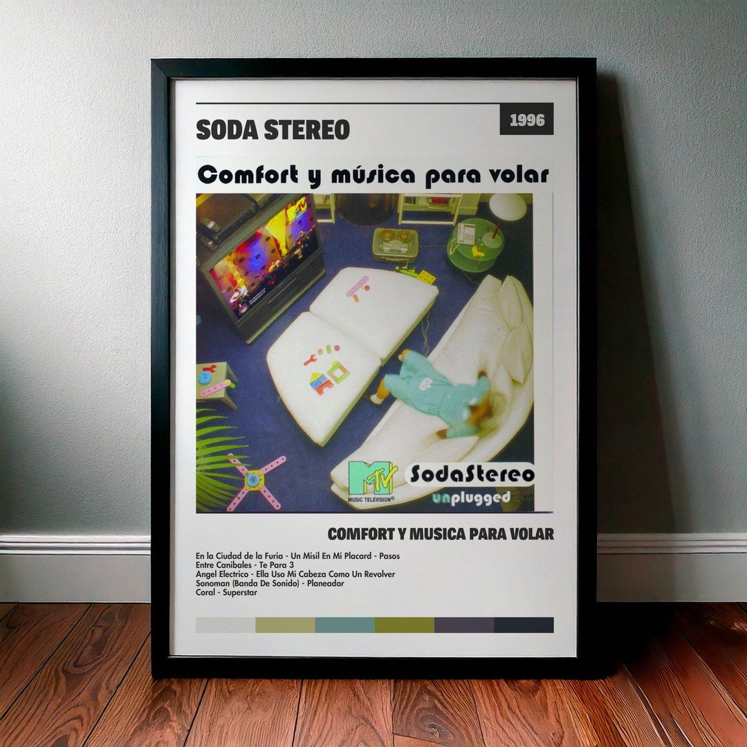 • Diseño Exclusivo: Cuadro de alta calidad basado en la portada del álbum Comfort Y Musica Para Volar de Soda Stereo.