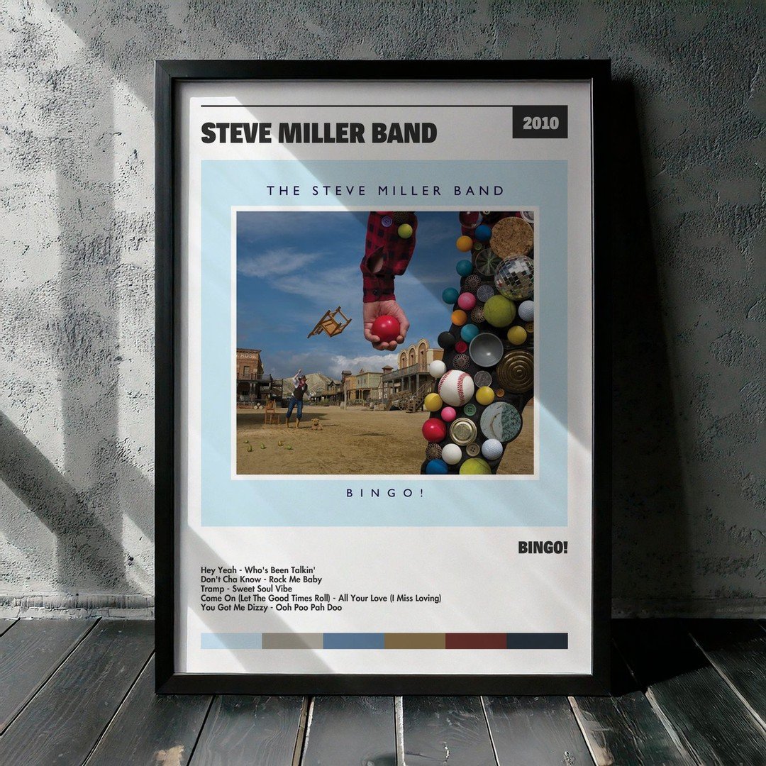 Nuestra colección de cuadros de Steve Miller Band captura la esencia de sus álbumes más icónicos, presentados en un elegante estilo, en este caso te presentamos el de su disco Bingo!.