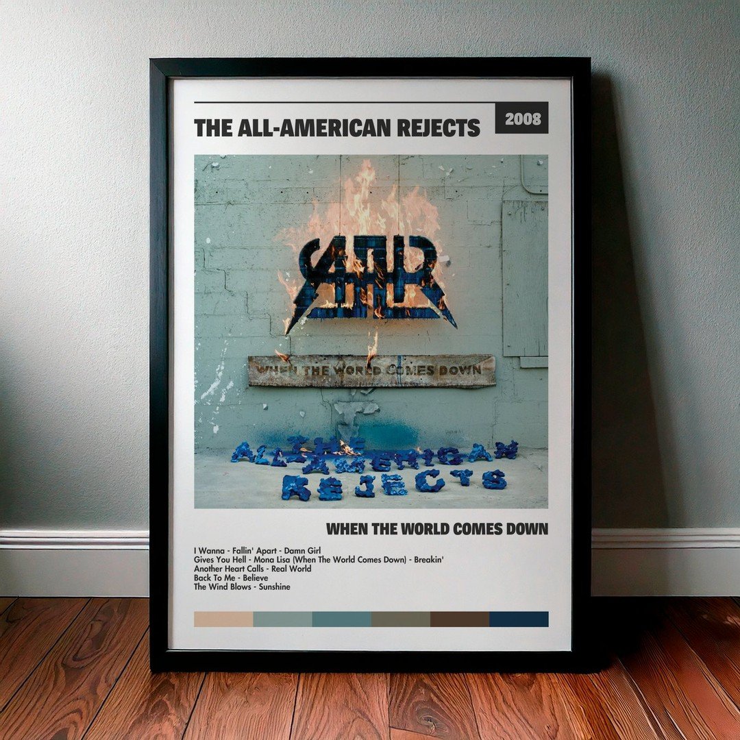 Nuestra colección de cuadros de The All-American Rejects captura la esencia de sus álbumes más icónicos, presentados en un elegante estilo, en este caso te presentamos el de su disco When The World Comes Down.
