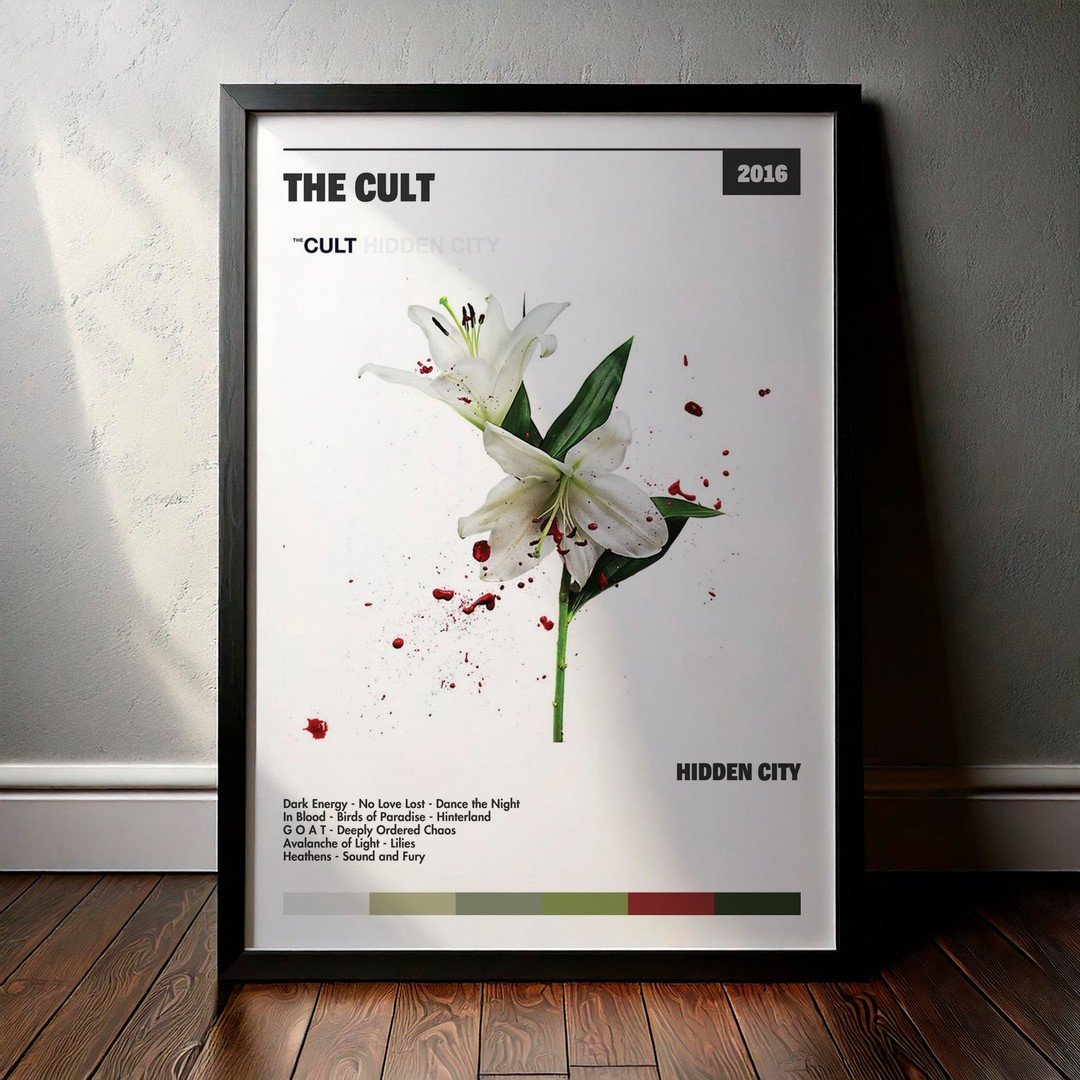 Nuestra colección de cuadros de The Cult captura la esencia de sus álbumes más icónicos, presentados en un elegante estilo, en este caso te presentamos el de su disco Hidden City.