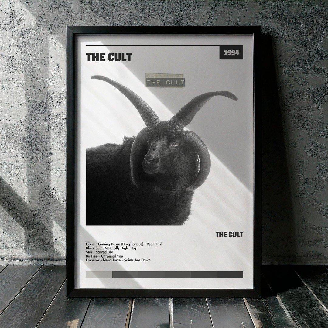 Nuestra colección de cuadros de The Cult captura la esencia de sus álbumes más icónicos, presentados en un elegante estilo, en este caso te presentamos el de su disco The Cult.