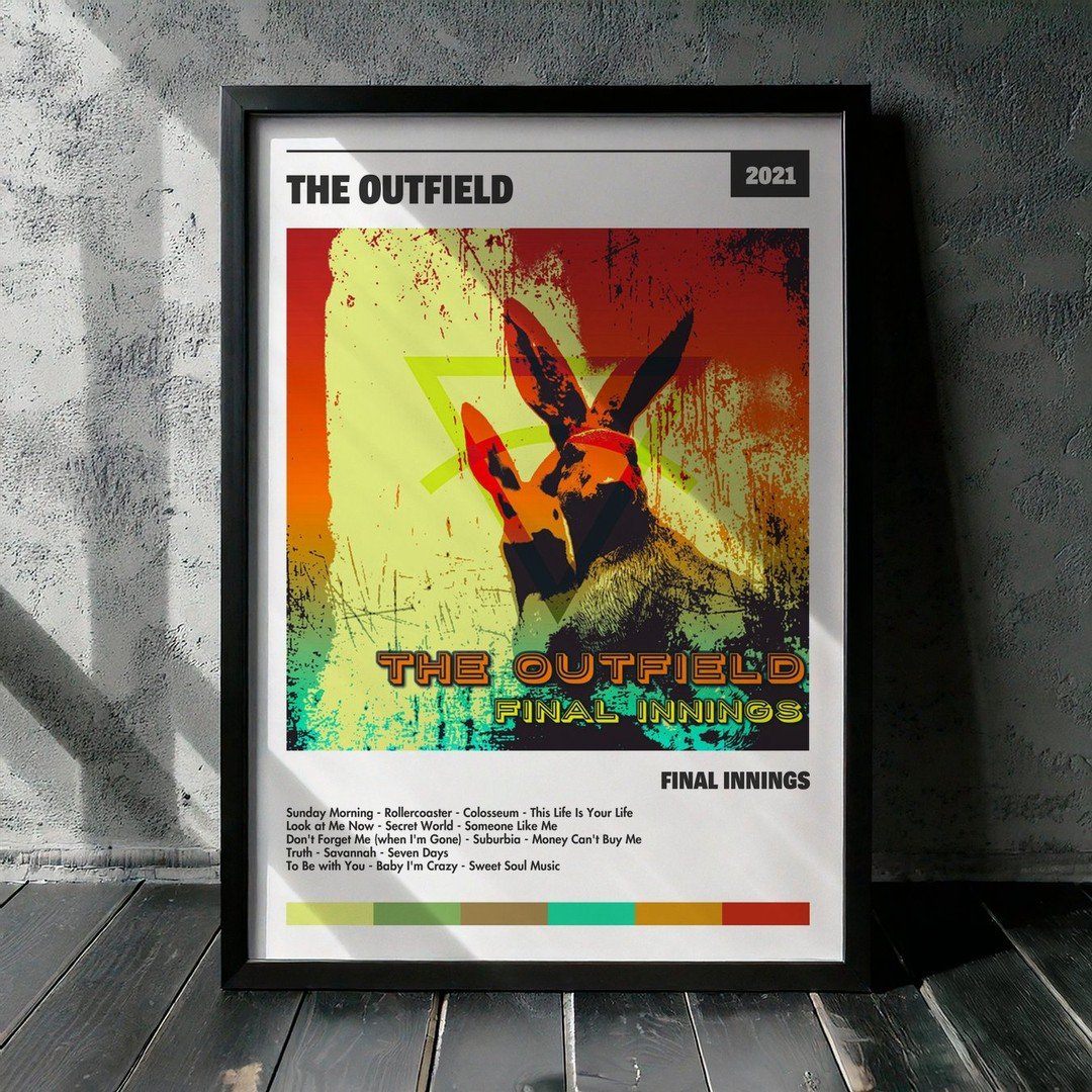 Nuestra colección de cuadros de The Outfield captura la esencia de sus álbumes más icónicos, presentados en un elegante estilo, en este caso te presentamos el de su disco Final Innings.