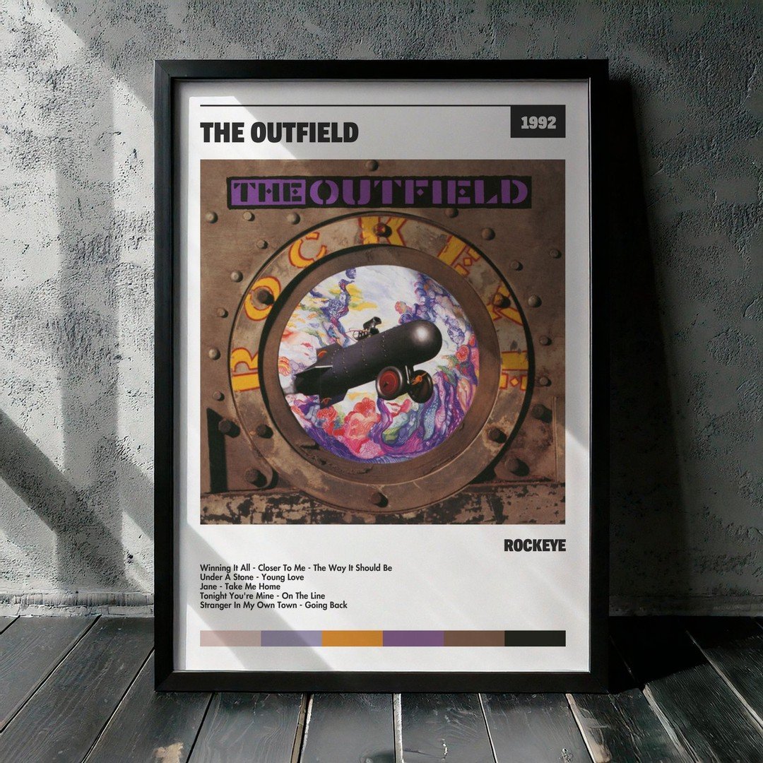 Nuestra colección de cuadros de The Outfield captura la esencia de sus álbumes más icónicos, presentados en un elegante estilo, en este caso te presentamos el de su disco Rockeye.