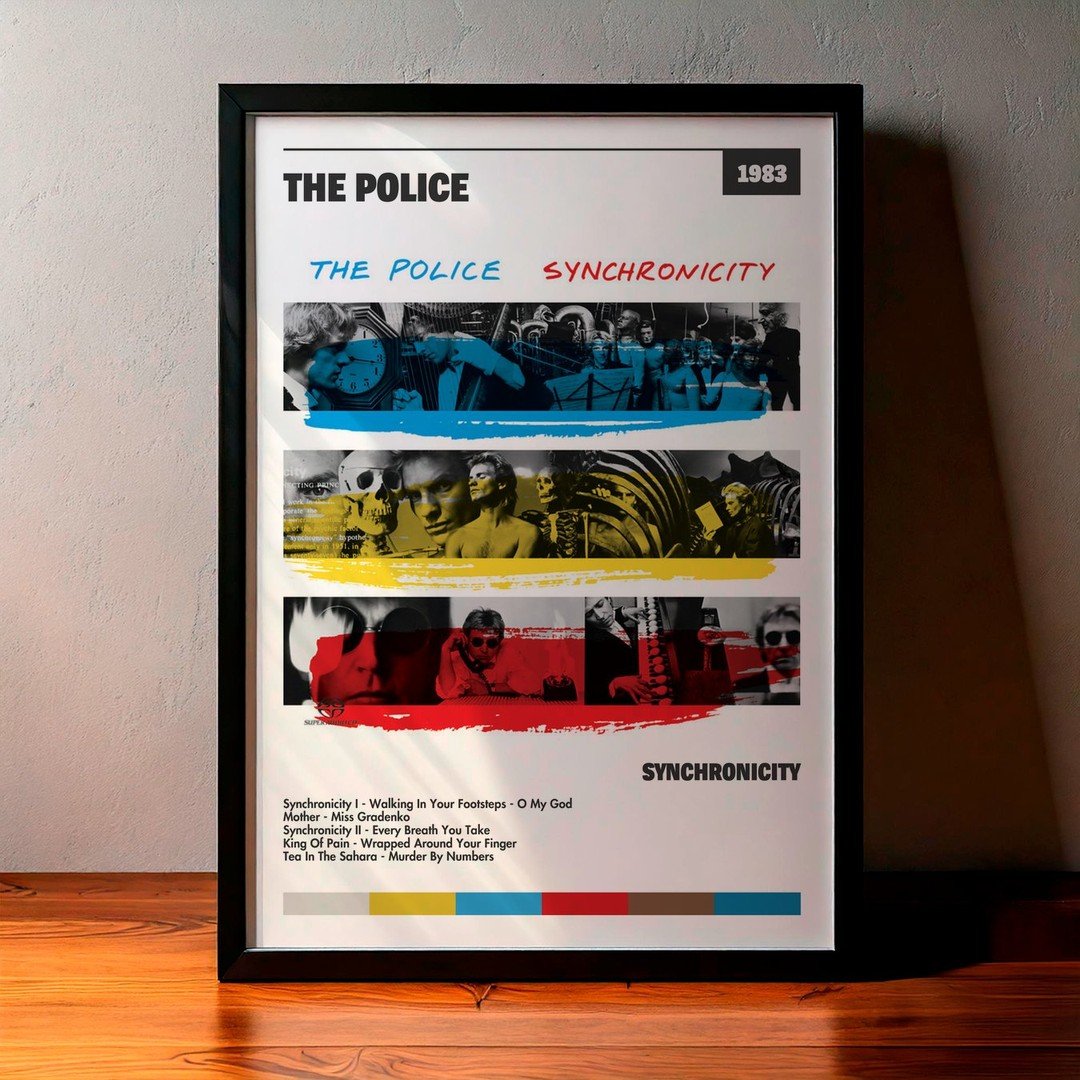 Nuestra colección de cuadros de The Police captura la esencia de sus álbumes más icónicos, presentados en un elegante estilo, en este caso te presentamos el de su disco Synchronicity.