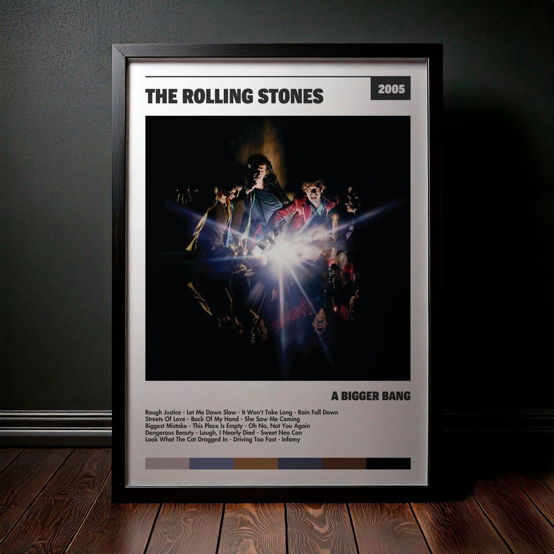 Nuestra colección de cuadros de The Rolling Stones captura la esencia de sus álbumes más icónicos, presentados en un elegante estilo, en este caso te presentamos el de su disco A Bigger Bang.