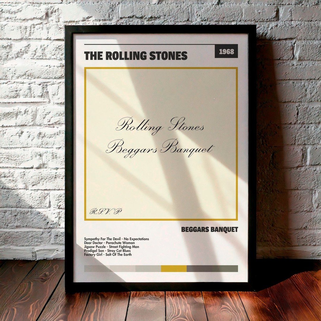 Nuestra colección de cuadros de The Rolling Stones captura la esencia de sus álbumes más icónicos, presentados en un elegante estilo, en este caso te presentamos el de su disco Beggars Banquet.