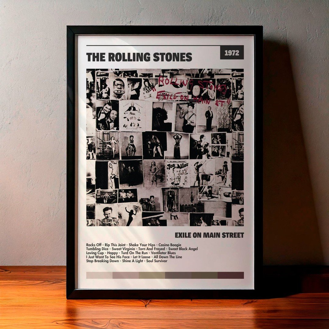 Nuestra colección de cuadros de The Rolling Stones captura la esencia de sus álbumes más icónicos, presentados en un elegante estilo, en este caso te presentamos el de su disco Exile On Main Street.
