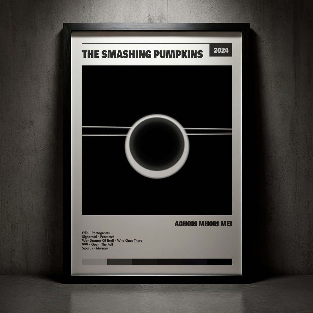 Nuestra colección de cuadros de The Smashing Pumpkins captura la esencia de sus álbumes más icónicos, presentados en un elegante estilo, en este caso te presentamos el de su disco Aghori Mhori Mei.