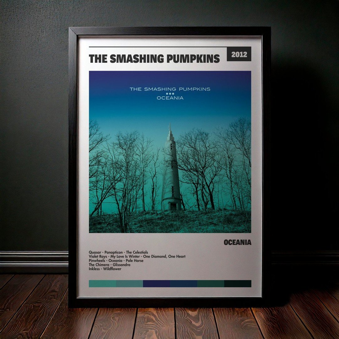 Nuestra colección de cuadros de The Smashing Pumpkins captura la esencia de sus álbumes más icónicos, presentados en un elegante estilo, en este caso te presentamos el de su disco Oceania.