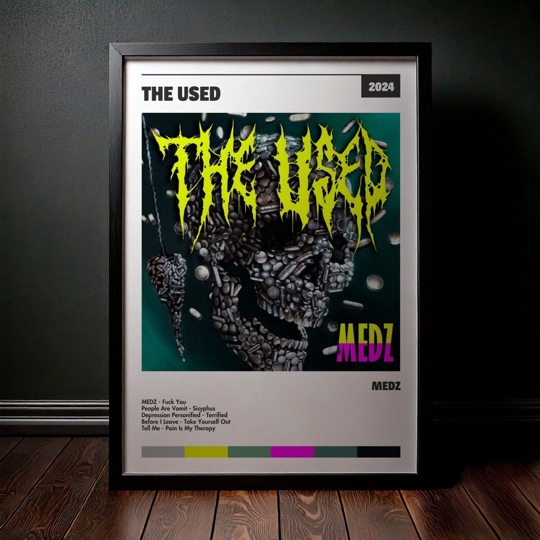 Nuestra colección de cuadros de The Used captura la esencia de sus álbumes más icónicos, presentados en un elegante estilo, en este caso te presentamos el de su disco MEDZ.