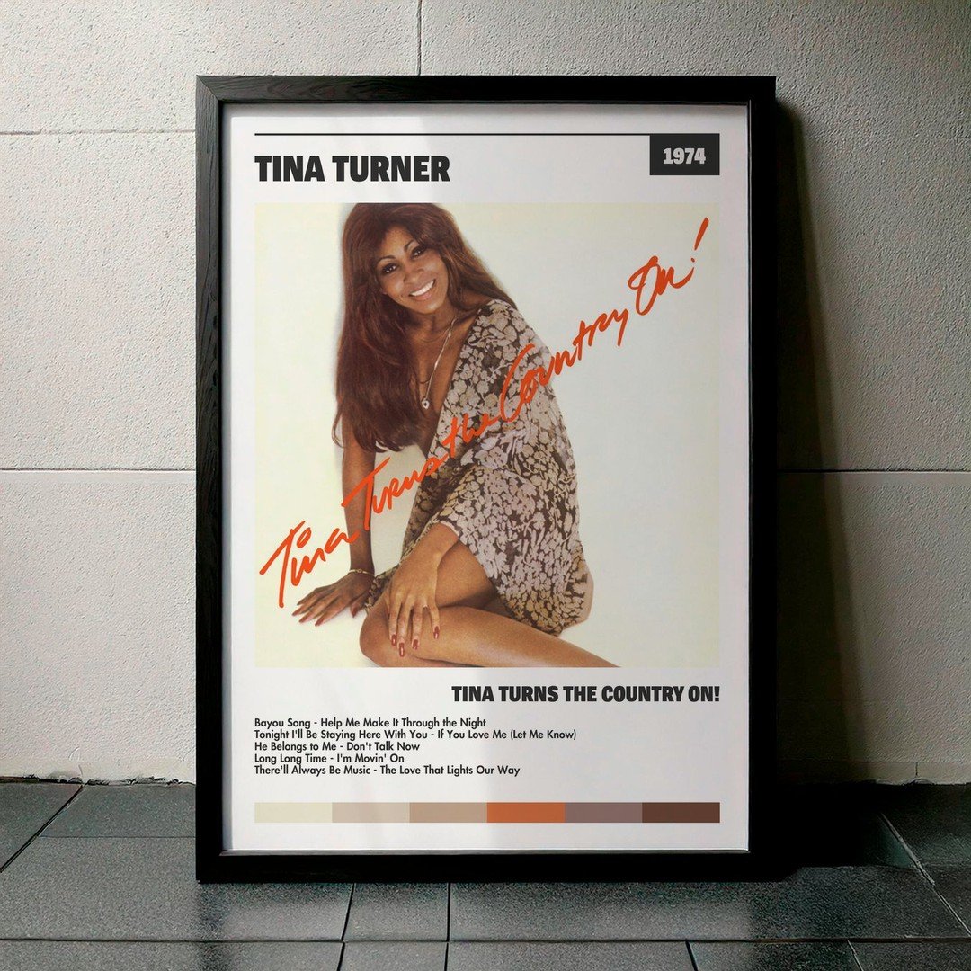 Nuestra colección de cuadros de Tina Turner captura la esencia de sus álbumes más icónicos, presentados en un elegante estilo, en este caso te presentamos el de su disco Tina Turns The Rock On!.