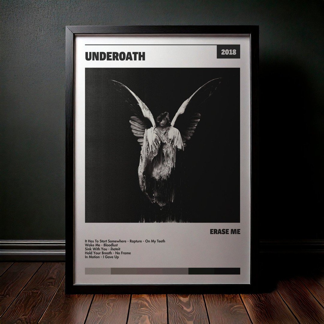 • Diseño Exclusivo: Cuadro de alta calidad basado en la portada del álbum Erase Me de Underoath.