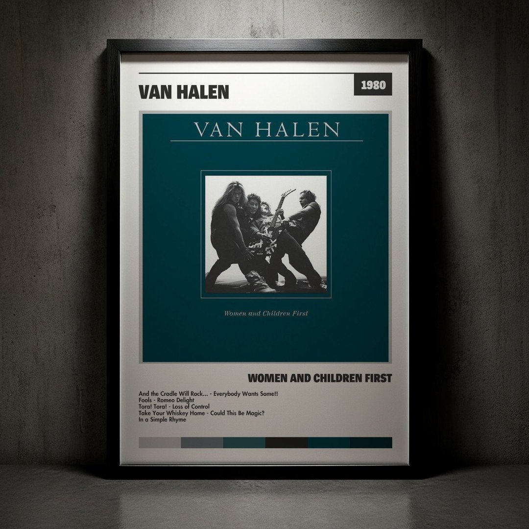Nuestra colección de cuadros de Van Halen captura la esencia de sus álbumes más icónicos, presentados en un elegante estilo, en este caso te presentamos el de su disco Women and Children First.