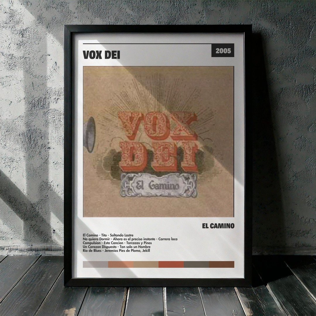 Nuestra colección de cuadros de Vox Dei captura la esencia de sus álbumes más icónicos, presentados en un elegante estilo, en este caso te presentamos el de su disco El Camino.