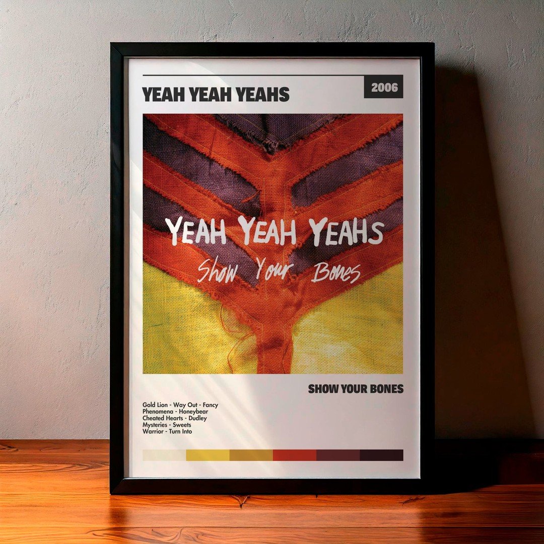 Nuestra colección de cuadros de Yeah Yeah Yeahs captura la esencia de sus álbumes más icónicos, presentados en un elegante estilo, en este caso te presentamos el de su disco Show Your Bones.
