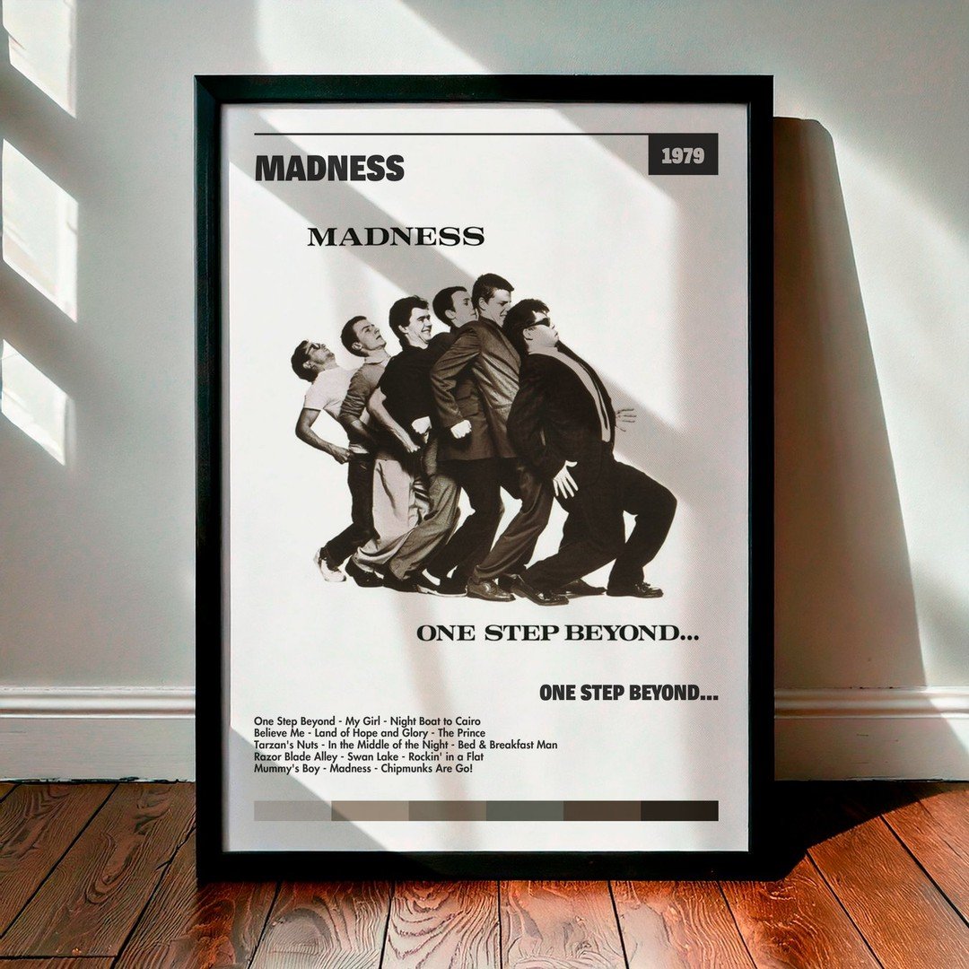 Nuestra colección de cuadros de Madness captura la esencia de sus álbumes más icónicos, presentados en un elegante estilo, en este caso te presentamos el de su disco One Step Beyond….